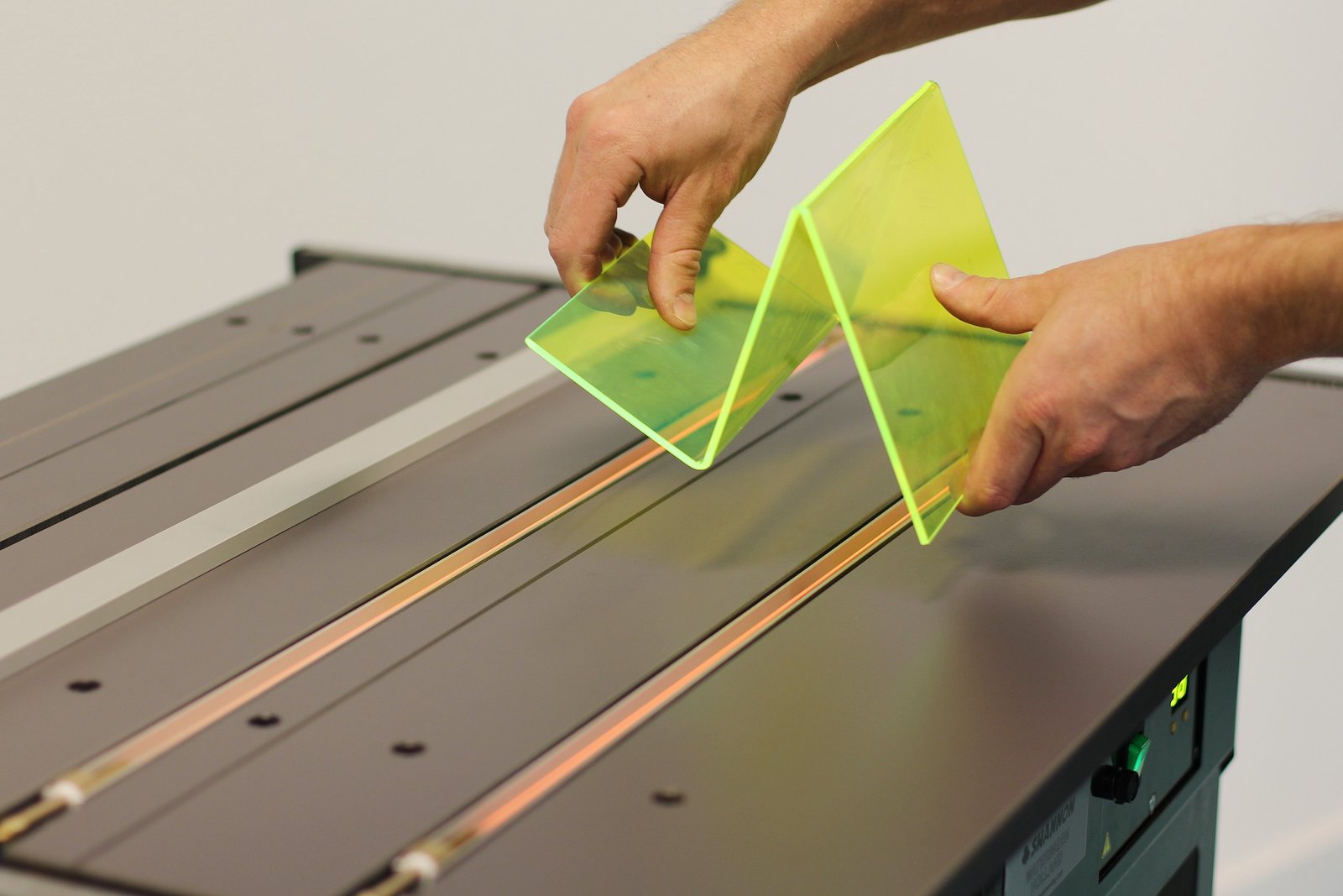 - Soğutma: Pleksi istenilen şekle getirildikten sonra soğumaya bırakılır. Soğuduğunda pleksi sertleşir ve bükülmüş şeklini kalıcı olarak korur. Bu aşamada pleksi malzemenin kırılmaması için işlem kontrollü bir şekilde yapılmalıdır.